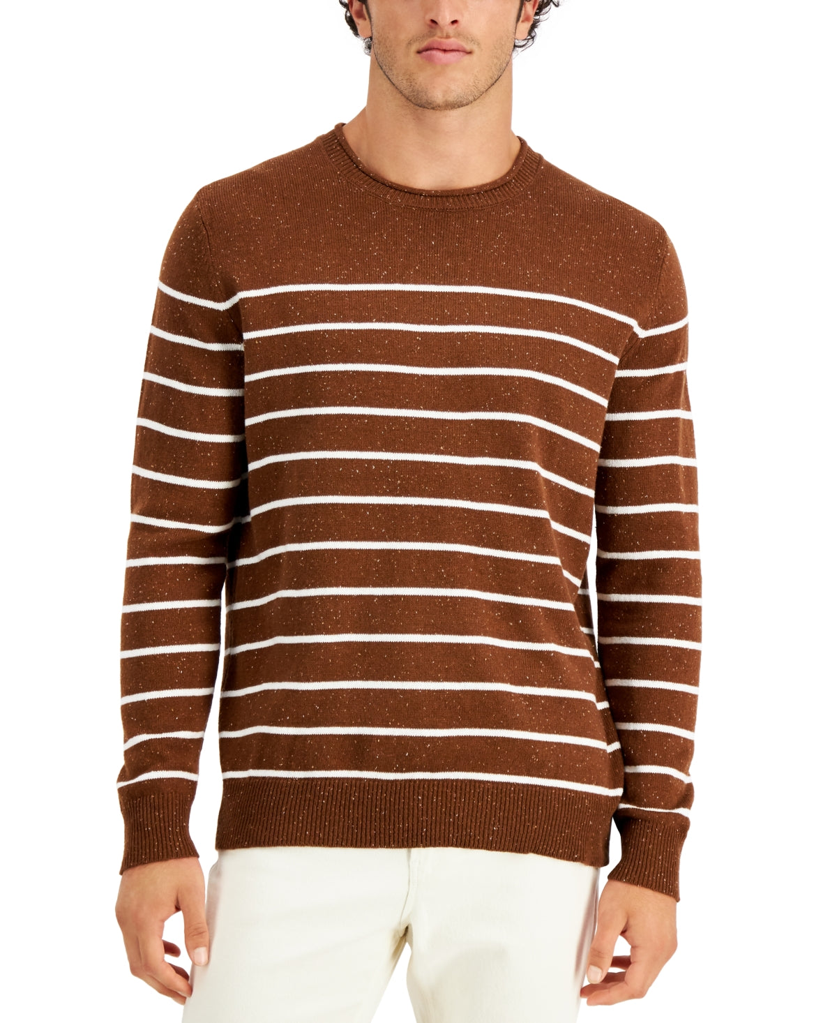 Club Room Men's Brown Striped Crewneck Sweater Brown White Medium