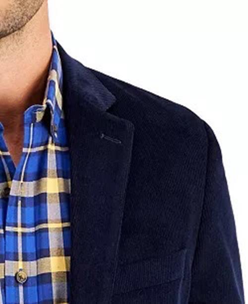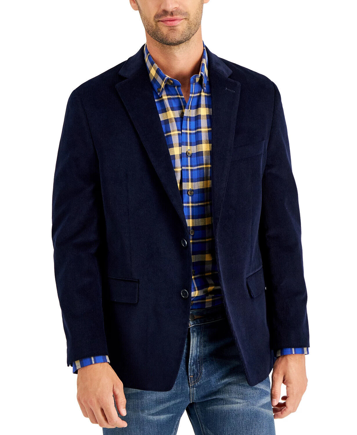 Club Room Men's Corduroy Classic-Fit Sport Coat 38L Solid Navy Blue