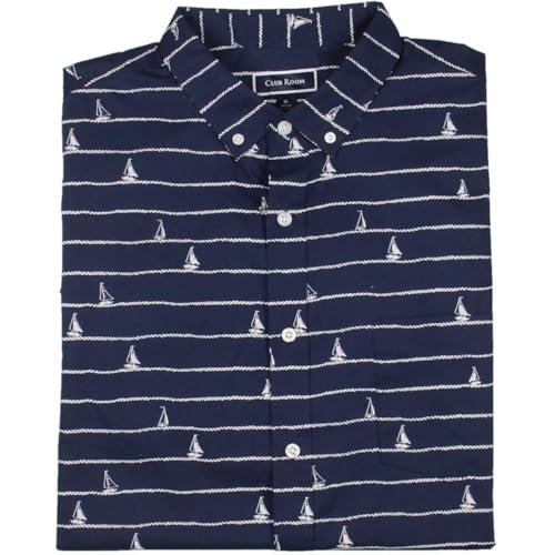 Club Room Mens Navy Blue Short Sleeve Button Down Shirt Medium