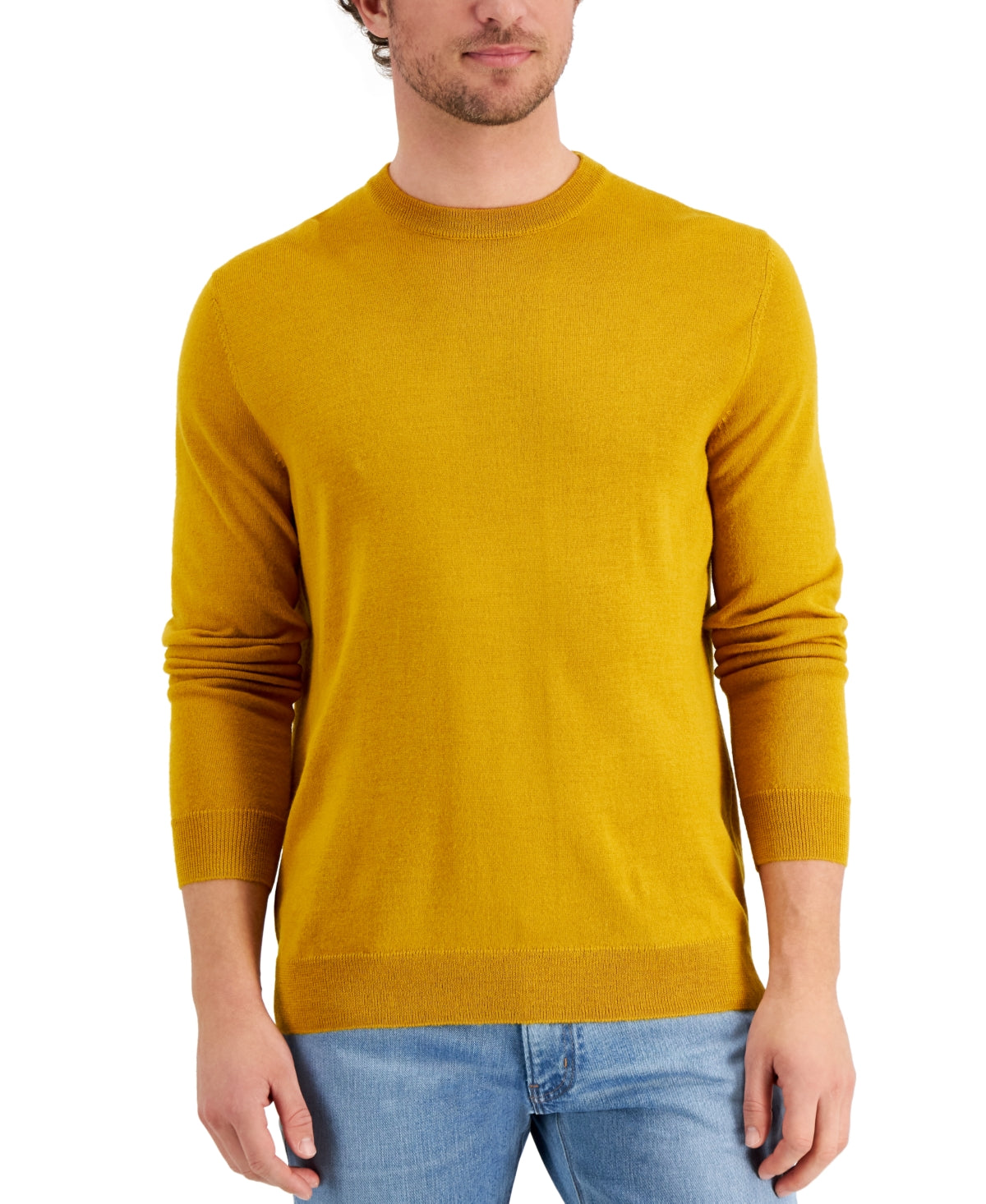 Club Room Men's Solid Crew Neck Merino Wool Blend Sweater Dijon Yellow Medium