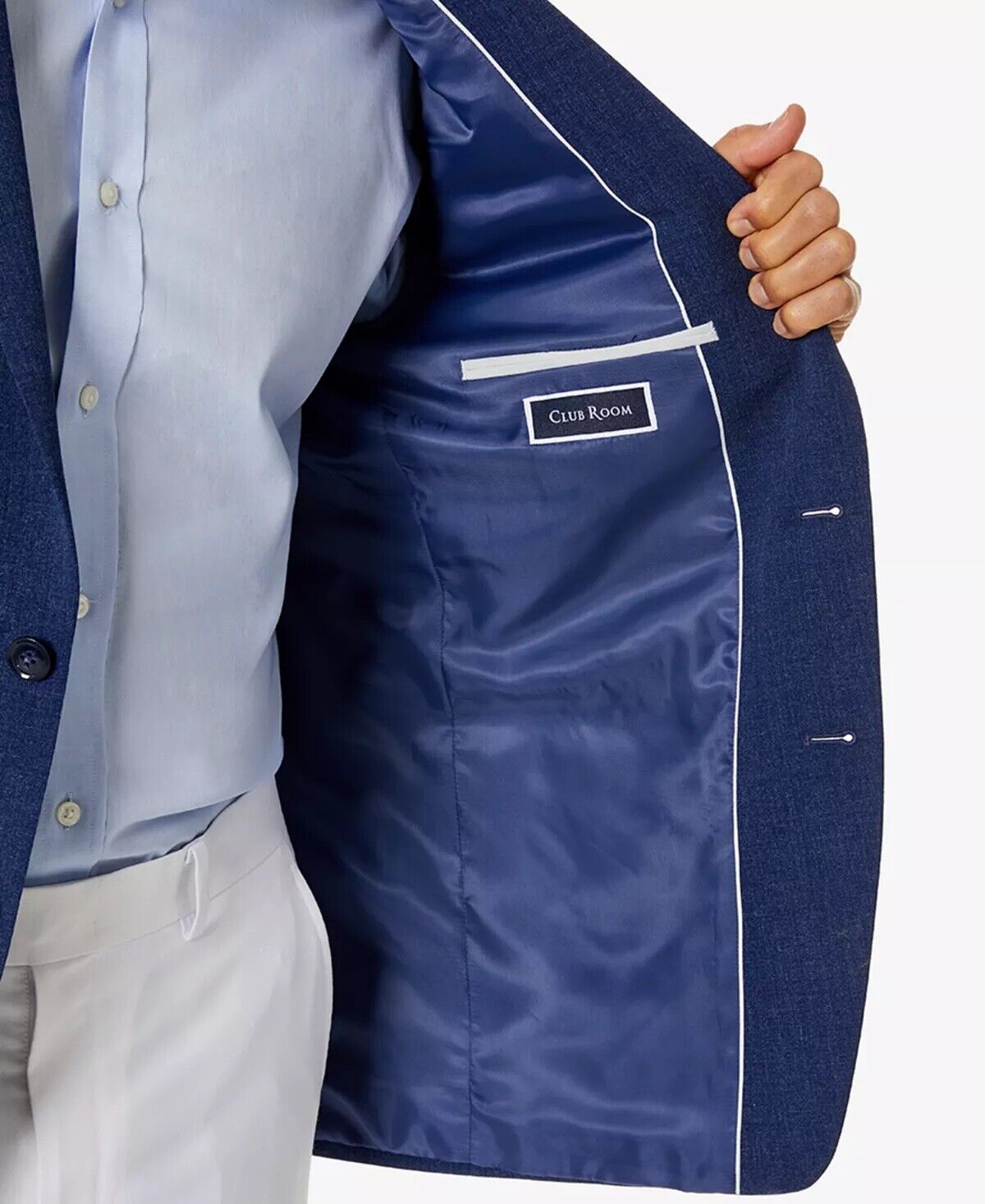 Description: In a simple classic style and fit this Club Room sport coat will be the most versatile piece in your closet. Pair it with a wide variety of print dress shirts and ties.