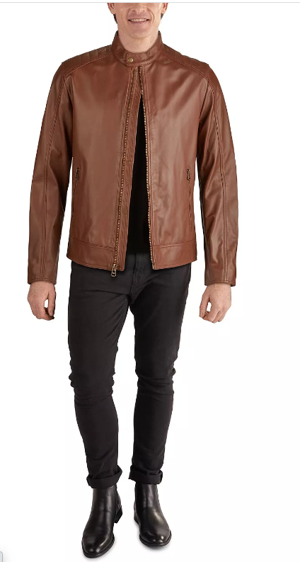 COLE HAAN Men's Jacket Brown XL Leather Motorcycle