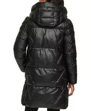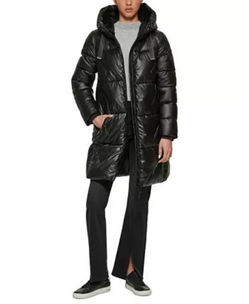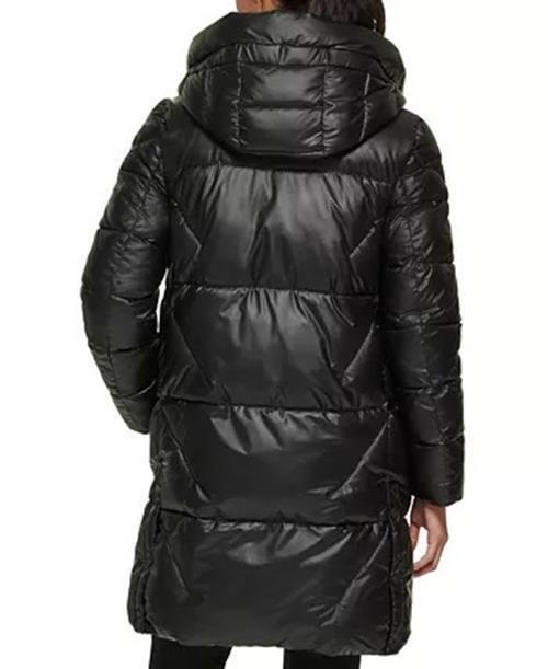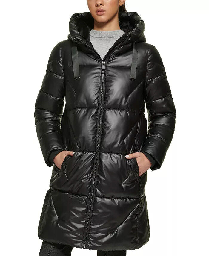 DKNY Women's Shine Hooded Puffer Coat Black Large