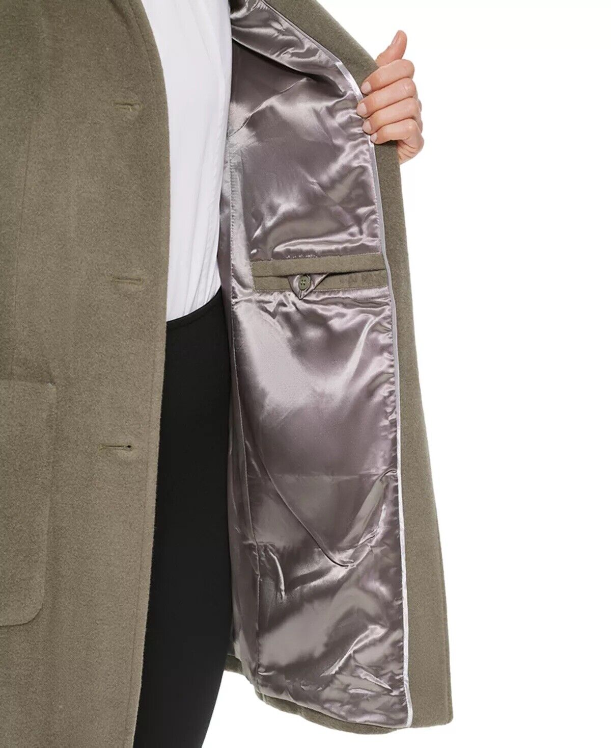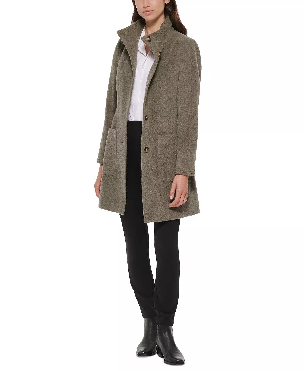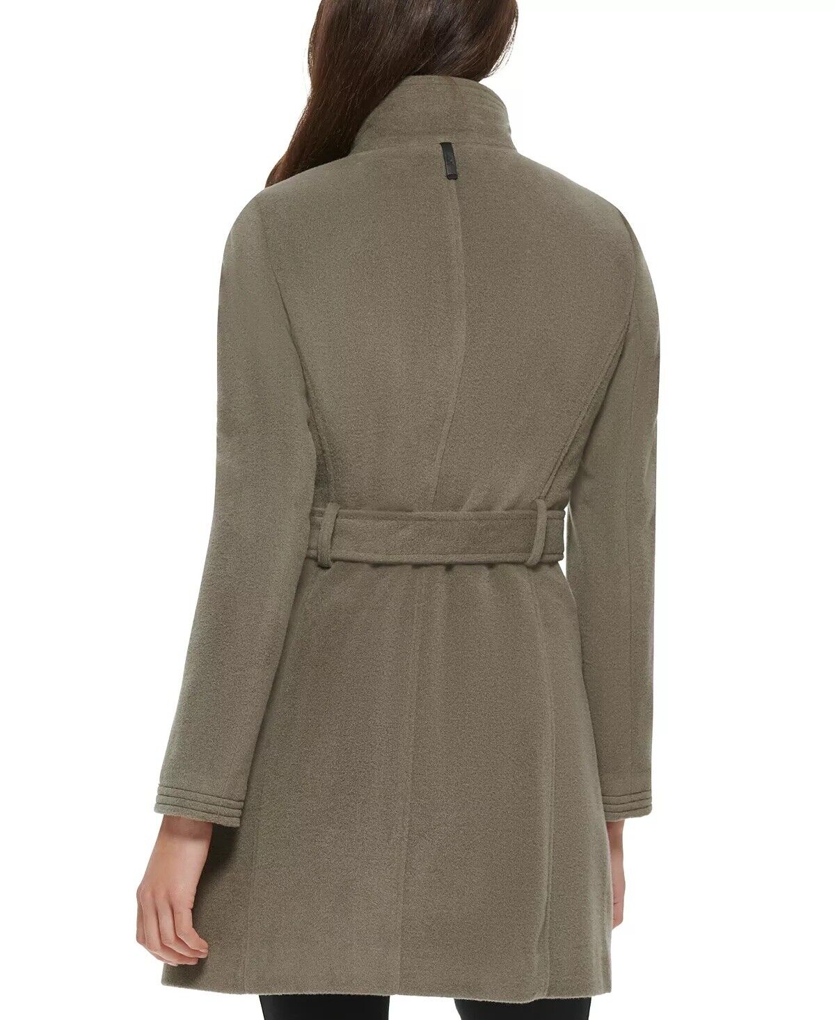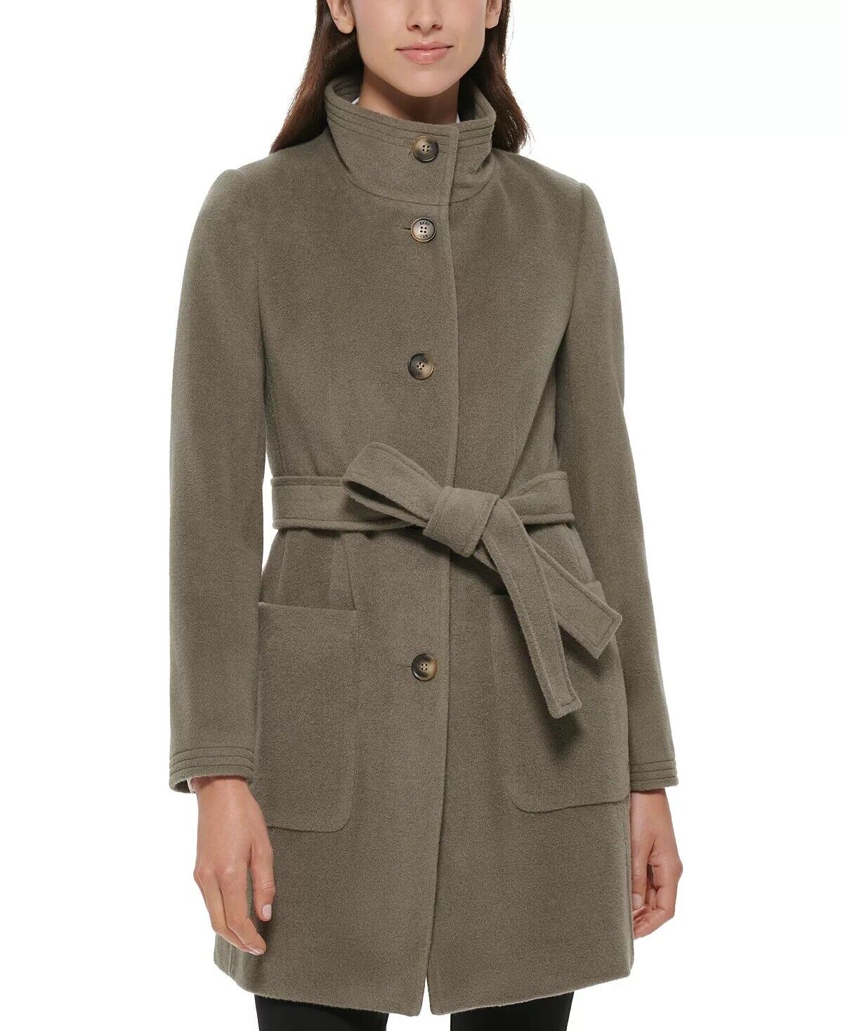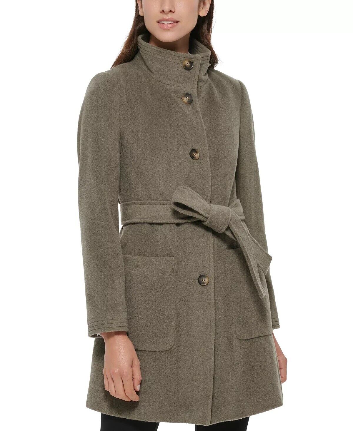 DKNY Women's Stand-Collar Button-Front Belted Coat Sage Green XXL
