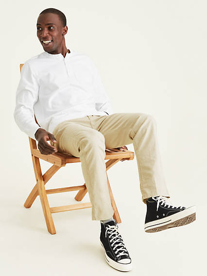 Introducing Dockers® Icons: the clothes we stand for that epitomize the Dockers® look. These timeless, modern and endlessly relevant products feature the fits and the detailing we love above all else. Our Icon Chino is the ideal casual chino — and we made sure of that by poring over every last detail. We simplified its style, tweaked its fit to hang even better, and finished it off with a mix of elements inspired by some of our favorite pants from the archive. Then we made it more sustainably with our Cotton Hemp fabric blend. The Icon Chino is the ideal casual chino, with the perfect mix of style, fit and detailing to last for decades to come Made with our Cotton Hemp fabric — a soft, durable and natural fabric that we've found a way to "cottonize" so that it feels just like the cotton you're used to Hemp requires less water and fewer pesticides to grow, supporting healthier soil and cleaner water Welt pockets Zip fly Imported Style: A11650005 Color: Elm Moonstruck 34 / 30 Dockers Alpha Icon Chinos, Tapered Fit, Men's,