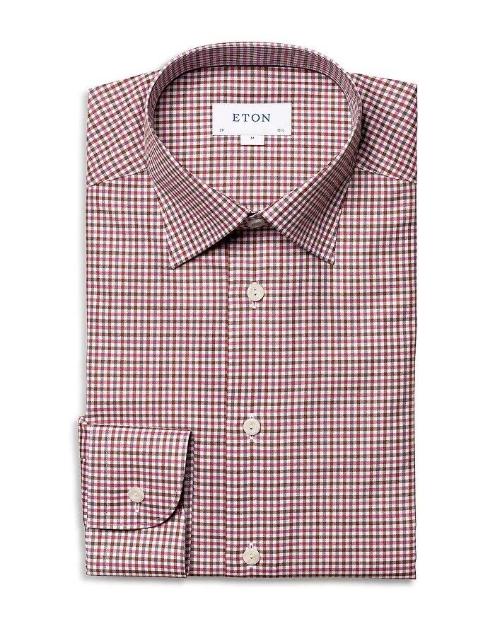 Eton Mens Contemporary Fit Check Stretch Dress Shirt 16 - 41 Large Red Brown