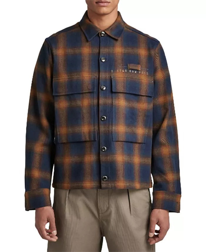 G-STAR RAW Men's Pocketony Plaid Service Overshirt Jacket XL Orange Blue