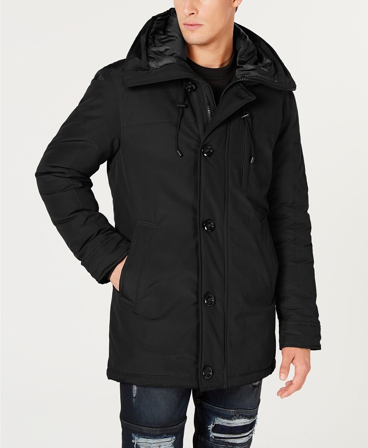GUESS Men's Hooded Parka with Removable Faux-Fur Trim Medium Black