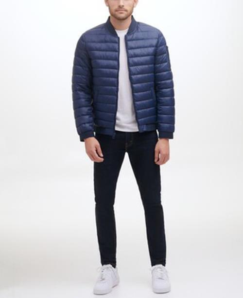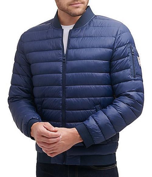 GUESS Men's Quilted Bomber Jacket Small Navy Blue
