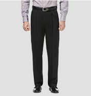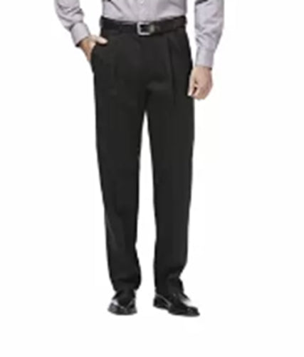 Haggar Men's Iron Free Premium Khaki Classic-Fit Pleated Pants 42 x 29 Black