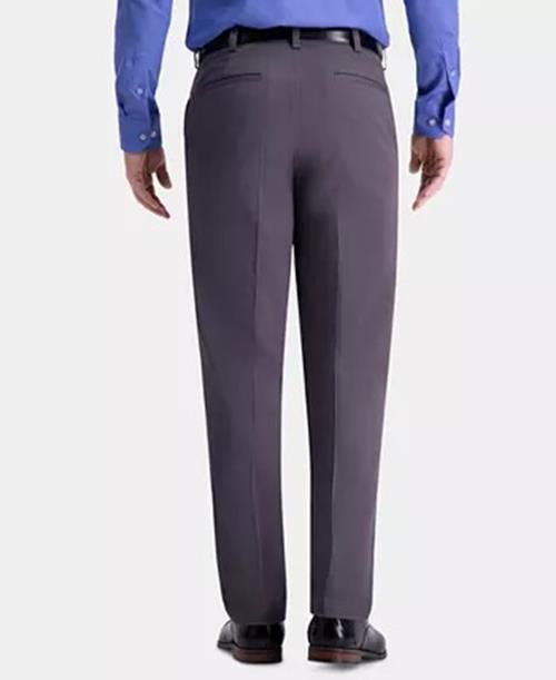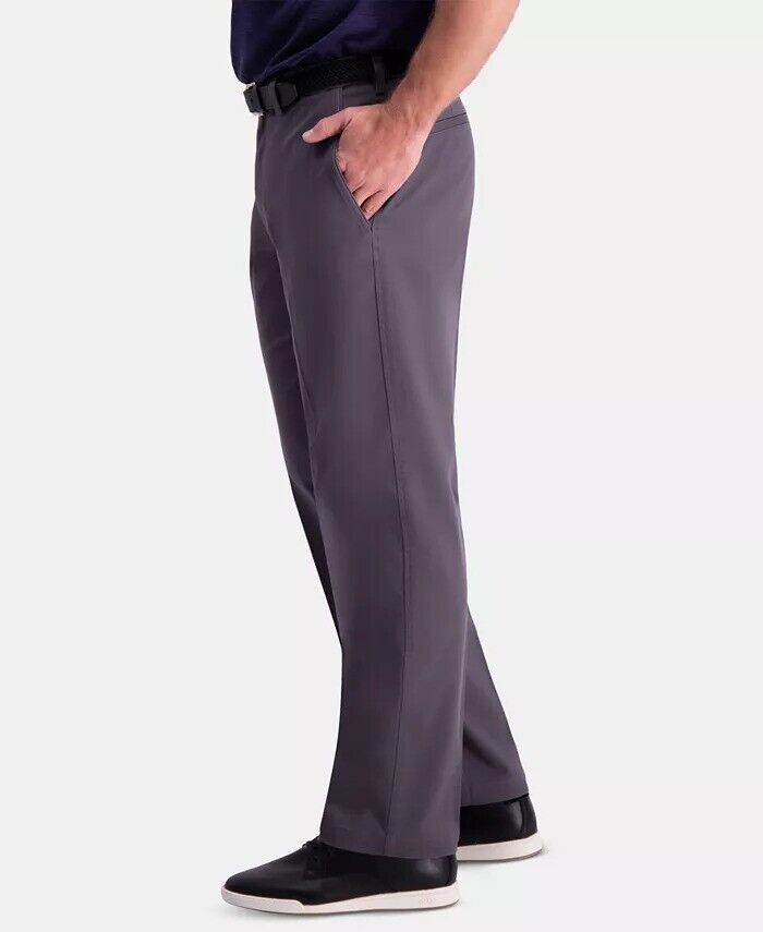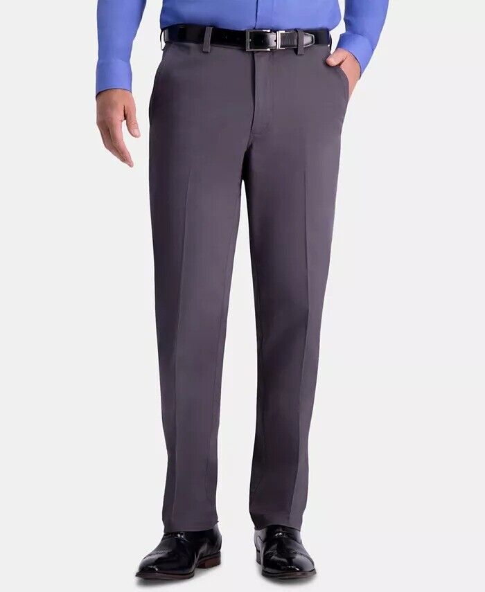 HAGGAR Men's Khaki Classic-Fit 2-Way Stretch Flat Pants 42 x 30 Charcoal Grey