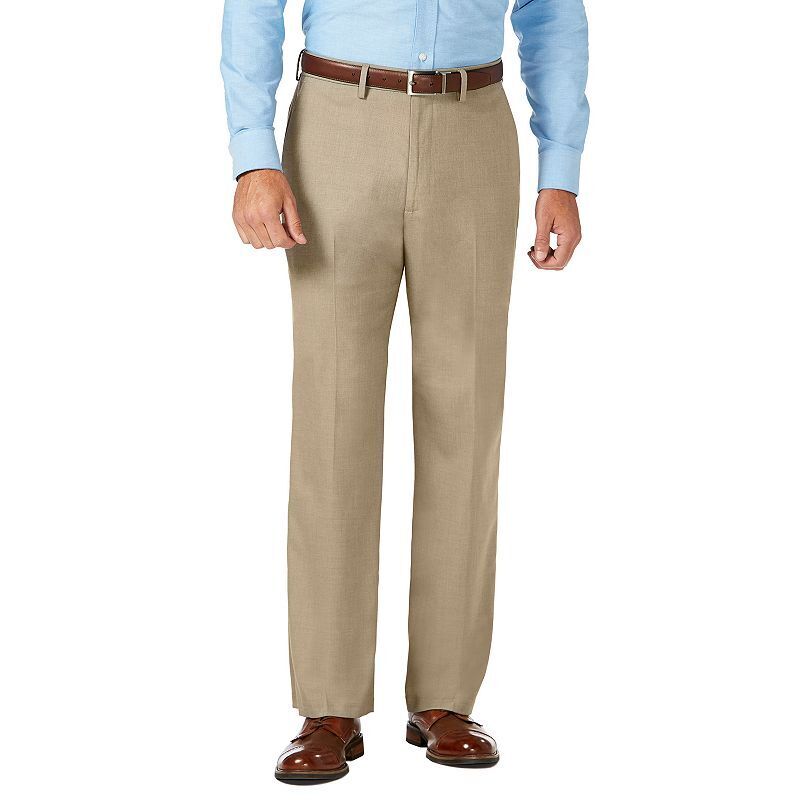 Haggar Sharkskin Classic-Fit Flat Front Flex Waistband Beige Dress Pants 38 x 30