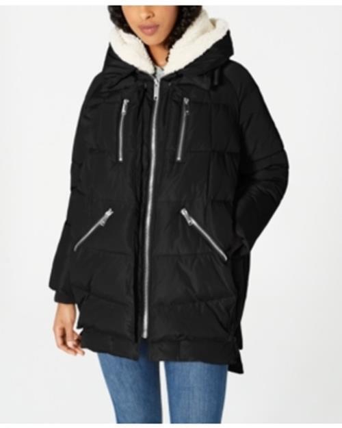 Halifax HFX Womens Hooded Fleece-Lined Puffer Coat Black Small