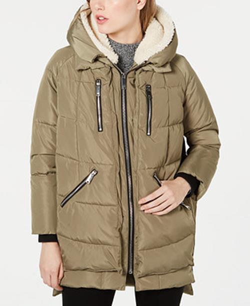 Soft sherpa fleece lines the hood of this oversized puffer coat from Halifax, designed with four zippered pockets at the front for a convenient finish.