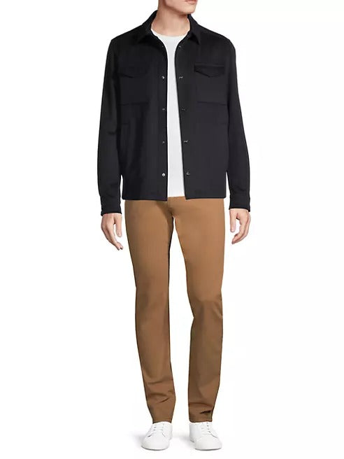 This Herno shirt jacket is crafted of a luxe wool and cashmere blend and fastens with snap-front closures. A chest flap pocket completes this style.