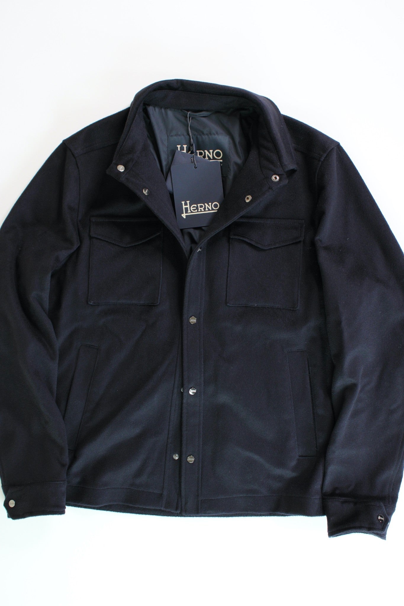 Herno Mens Wool & Cashmere Half-Lined Snap Jacket EU 54 US 44 Navy Blue Coat