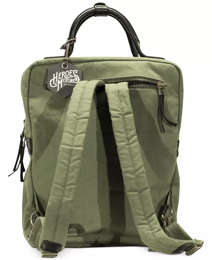 Heroes Motors Men's Small Backpack Canvas / Leather Green