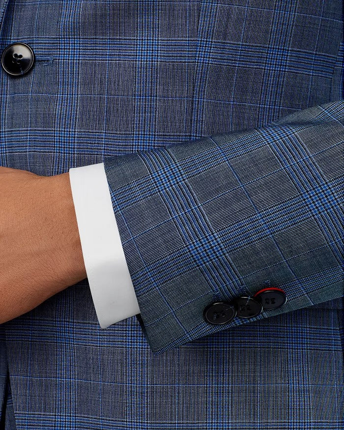 HUGO BOSS Mens Arti Plaid Extra Slim Fit Sport Coat Jacket 40S Blue Tonal Plaid