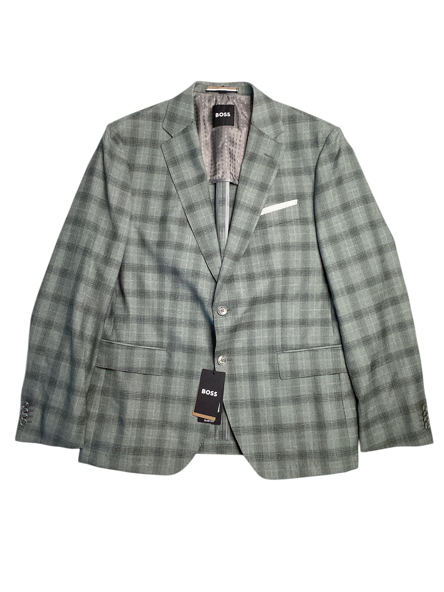 HUGO BOSS Mens Hutson Plaid Slim Fit Sport Coat Blazer 46R Green