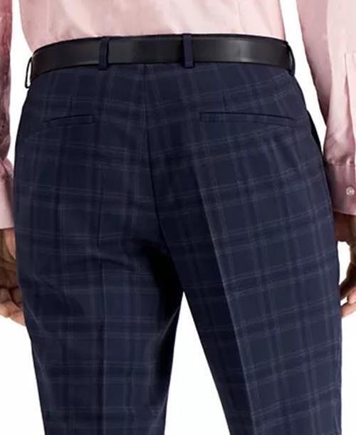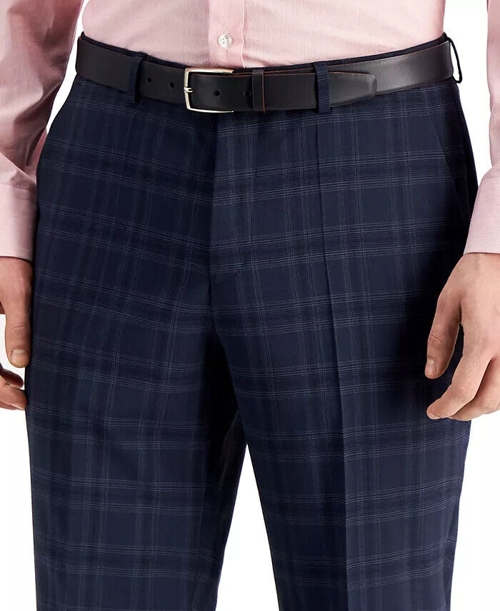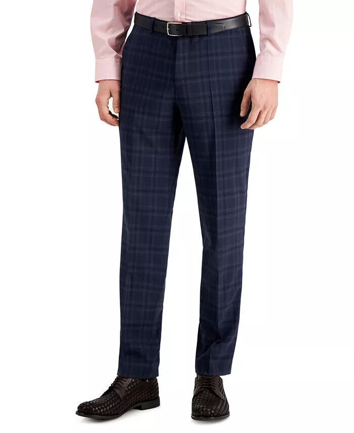 HUGO BOSS Men's Slim-Fit Navy Blue Plaid Wool Dress Pants 32 x 32
