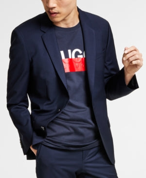 Hugo Boss Mens Slim fit Suit Jacket Blazer 36 R Navy Blue Solid Stretch Wool