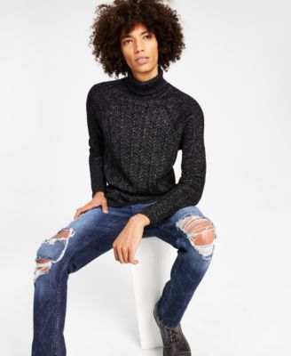 International Concepts Men's Metallic Cable Knit Turtleneck Sweater Xl Black