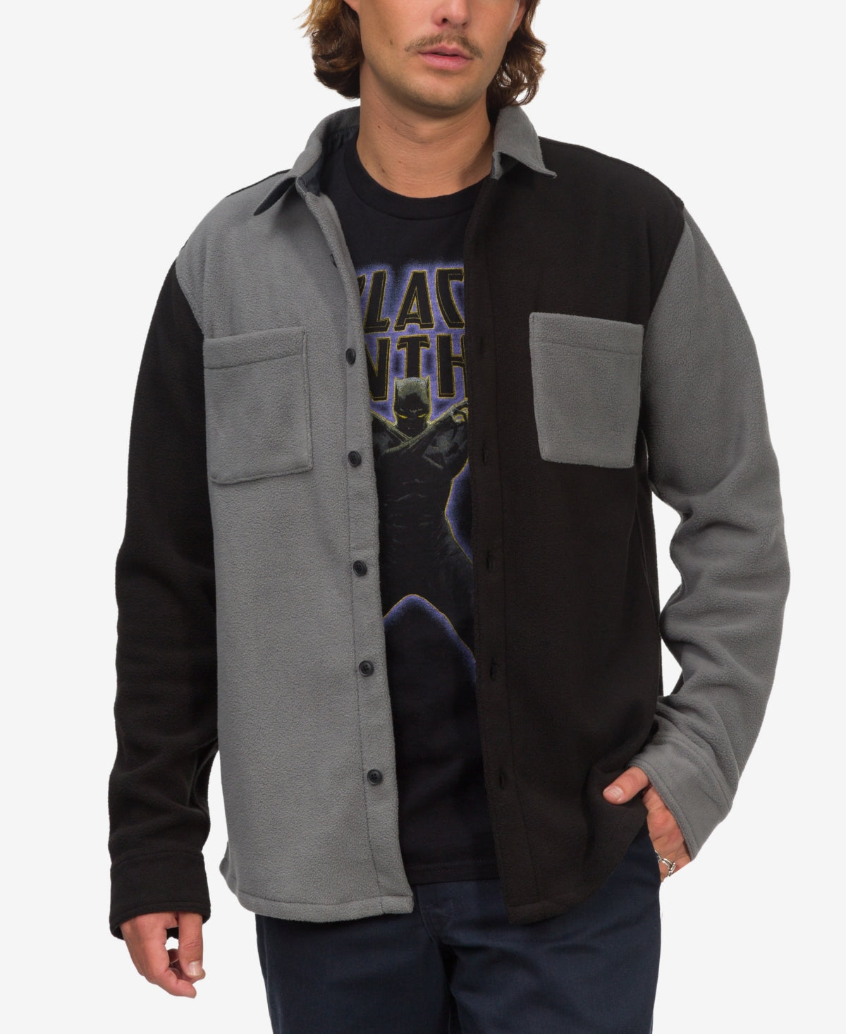 Junk Food Men's Sweeney Long Sleeve Button Down Fleece Shirt Black Medium