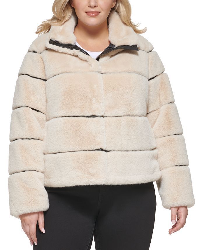 KARL LAGERFELD PARIS Women's Plus Size Faux-Fur Coat 3X Beige