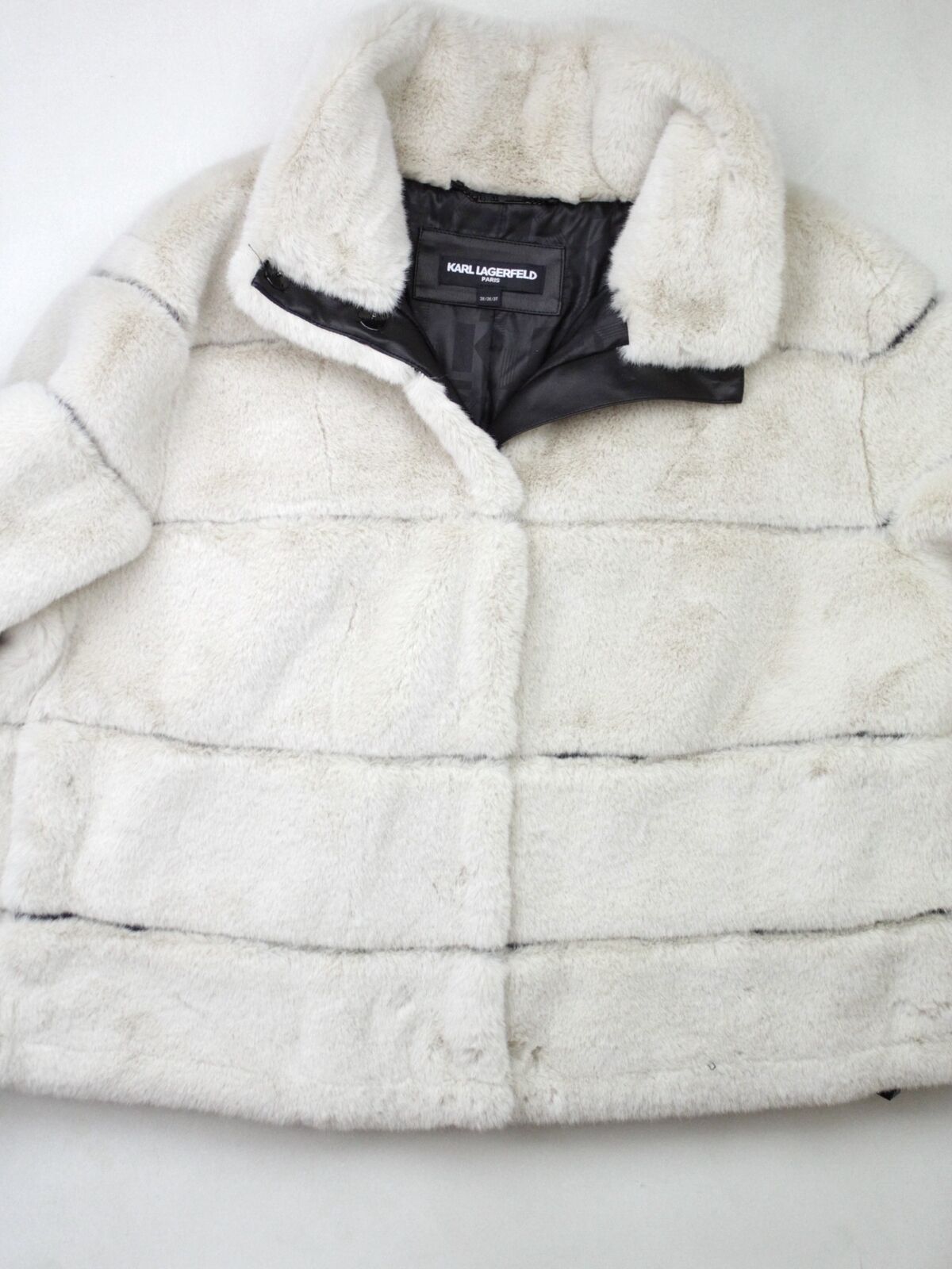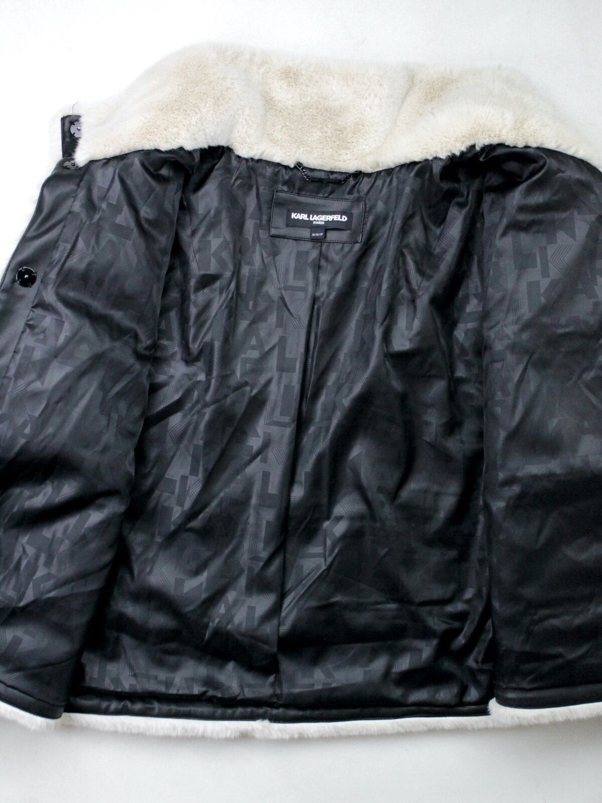 Sleek faux leather and luxurious faux fur come together beautifully in this plus size Karl Lagerfeld Paris coat.