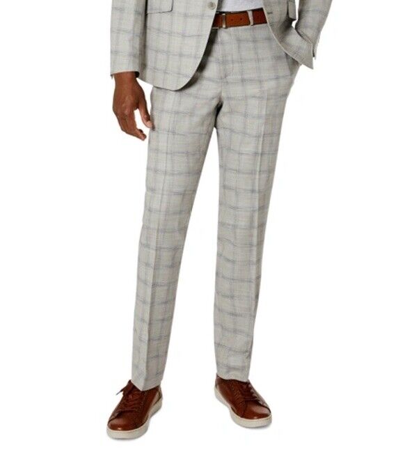 Kenneth Cole Reaction Men's Slim-Fit Ready Flex Stretch Pants 35 x 32 Grey Plaid