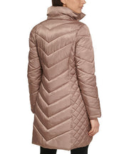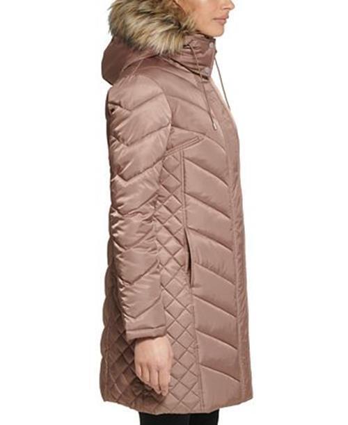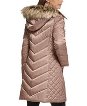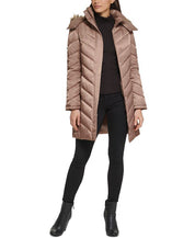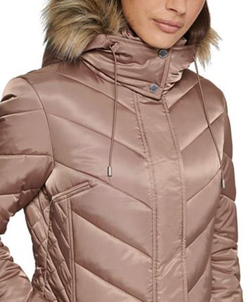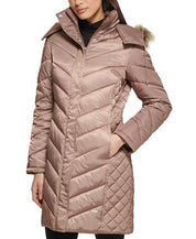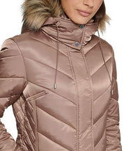 KENNETH COLE Women's Faux-Fur-Trim Hooded Puffer Coat Medium Truffle Brown