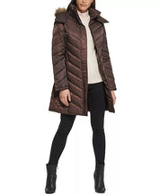 KENNETH COLE Women's Plus Faux-Fur-Trim Hooded Puffer Coat 3X Dark Roast Brown