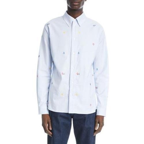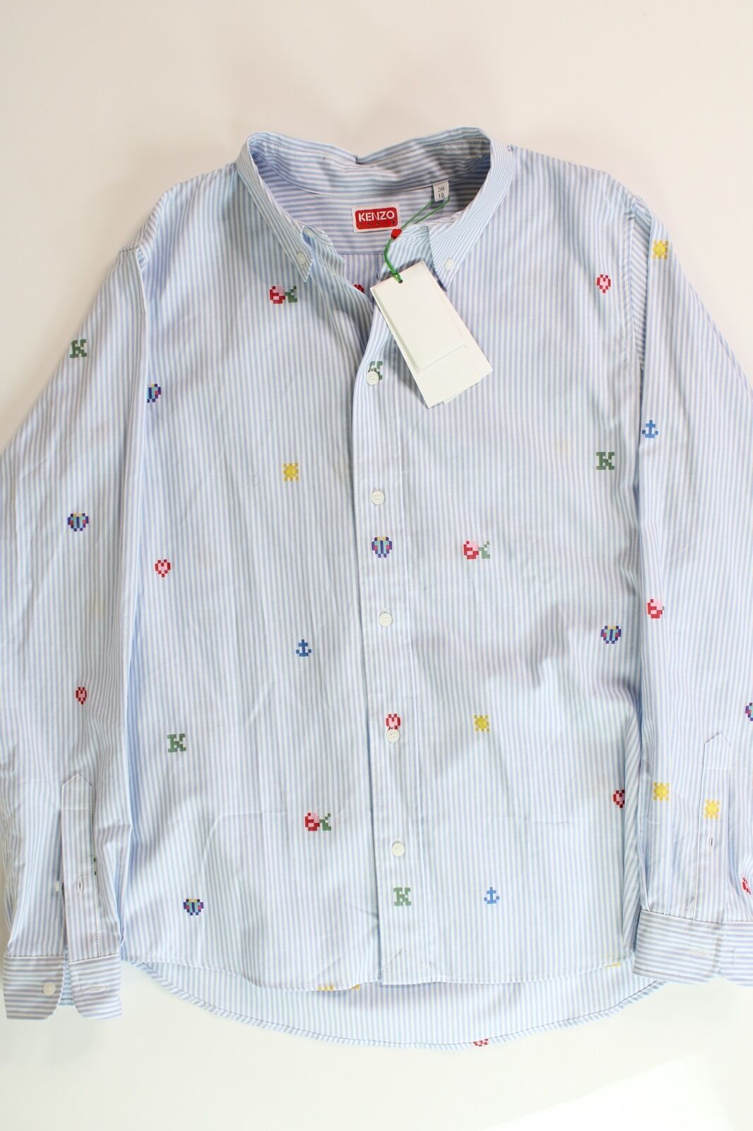 Kenzo Mens Extra Slim Fit Pixel Stripe Button-Down Shirt 15 .75 / 40 Blue