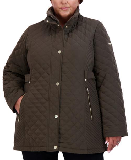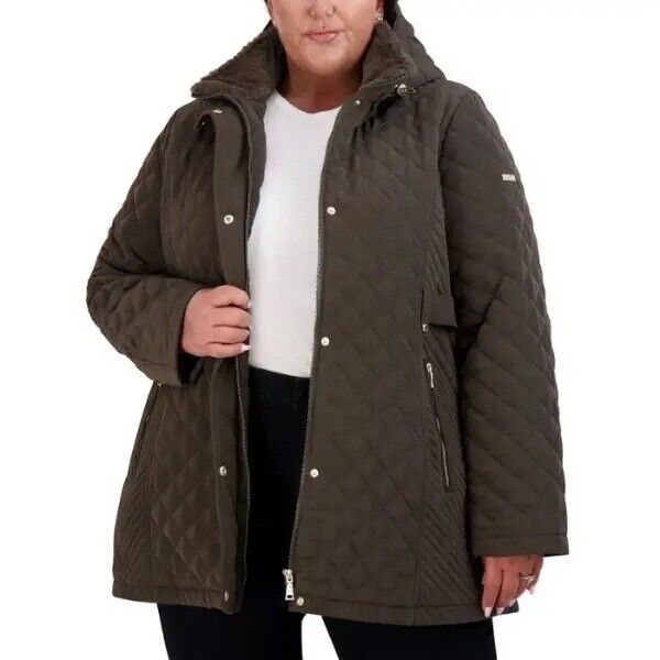 LAUNDRY BY SHELLI SEGAL Women's Plus Size Hooded Quilted Coat 0X Olive Green