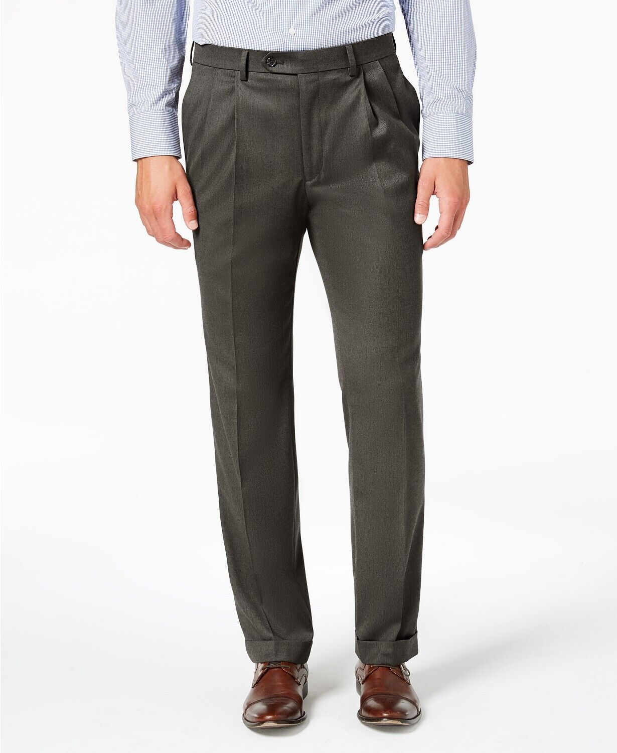 Lauren Ralph Lauren Classic Fit Micro Twill Pleated Dress Pants 36 x 34 Grey