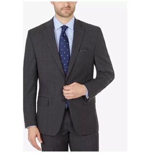 Lauren Ralph Lauren Mens Classic Fit Suit Jacket 44S Grey Blue Plaid