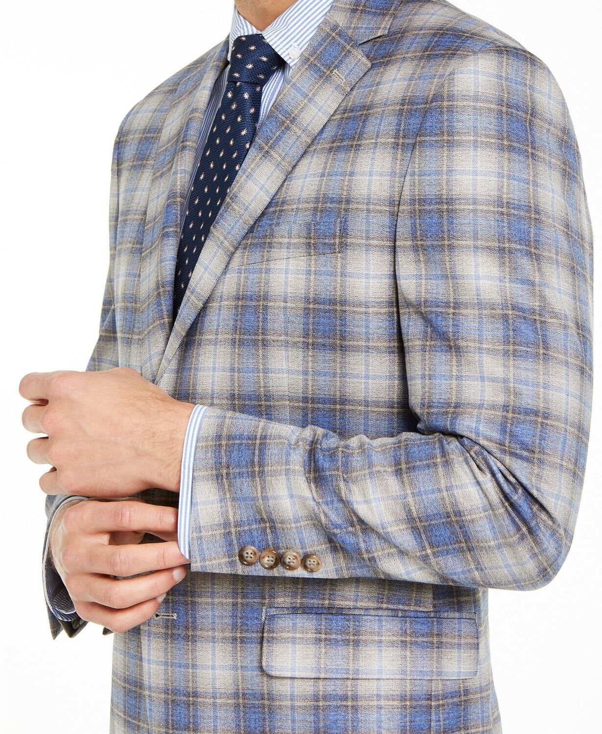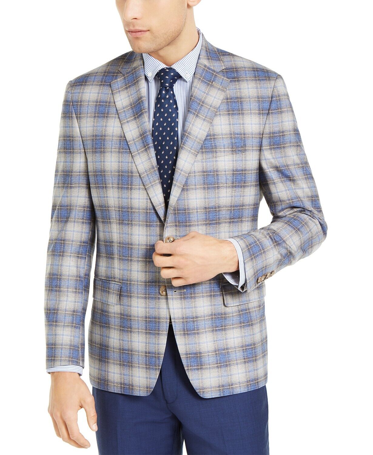 Subtly retro in its appearance, the crisp plaid of this Lauren Ralph Lauren sport coat allows for versatile wear atop dress pants, slacks or denim while its UltraFlex stretch fabric allows for a superior level of comfort.