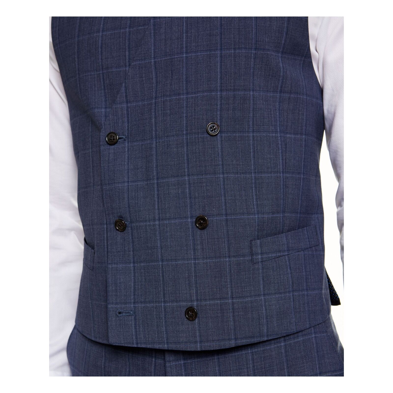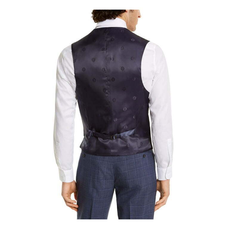 LAUREN RALPH LAUREN Mens Navy Blue Plaid Button Suit Vest Medium