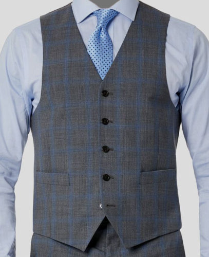 Lauren Ralph Lauren Men's Small Wool Stretch Suit Vest Grey Blue Plaid