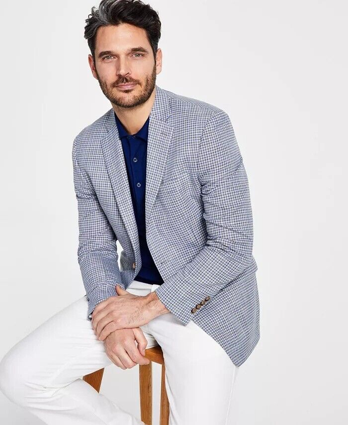 LAUREN RALPH LAUREN Men's Sport Coat 40L Classic-Fit UltraFlex Grey Blue Check