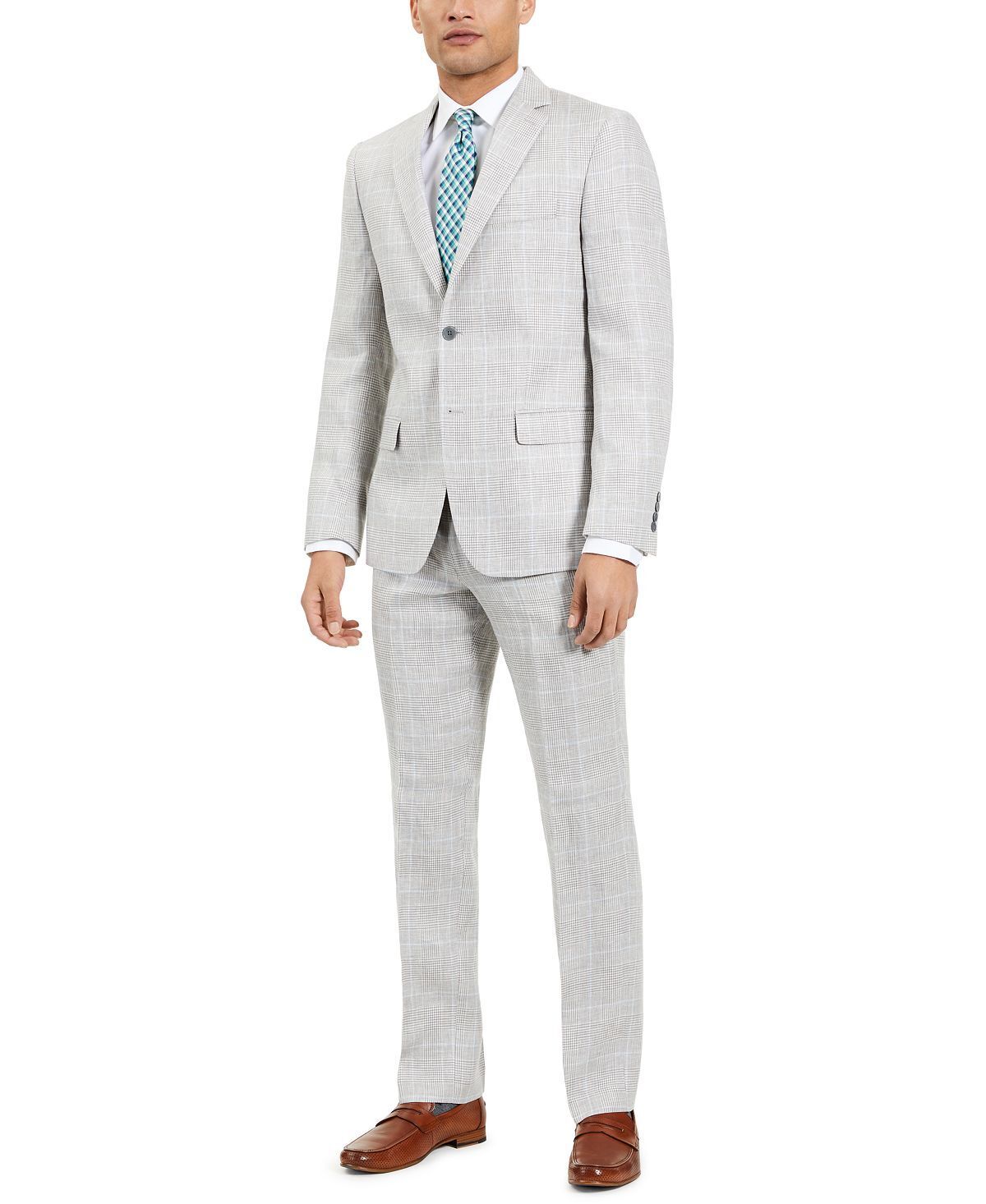 Bring new life to your business-ready look with the luxe linen and refreshing hues of this Ultra-Flex stretch plaid suit jacket from Lauren Ralph Lauren.