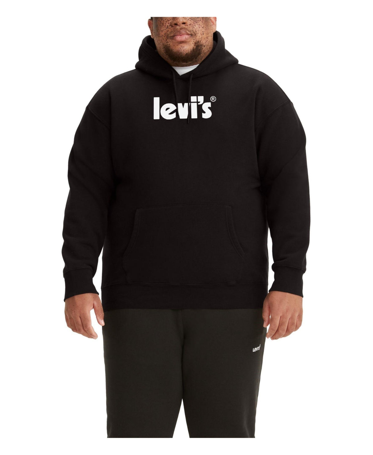 Stay cozy in style with Levi's Men's Big and Tall Relaxed Graphic Pullover Hoodie in Poster Caviar. This relaxed fit hoodie features a bold graphic print on the front, a comfortable drawstring hood, and a kangaroo pocket. Made from a soft and durable cotton blend, this hoodie is perfect for layering over your favorite t-shirts for a casual and cool look. Whether you're running errands or relaxing at home, this hoodie will keep you comfortable and stylish all day long.