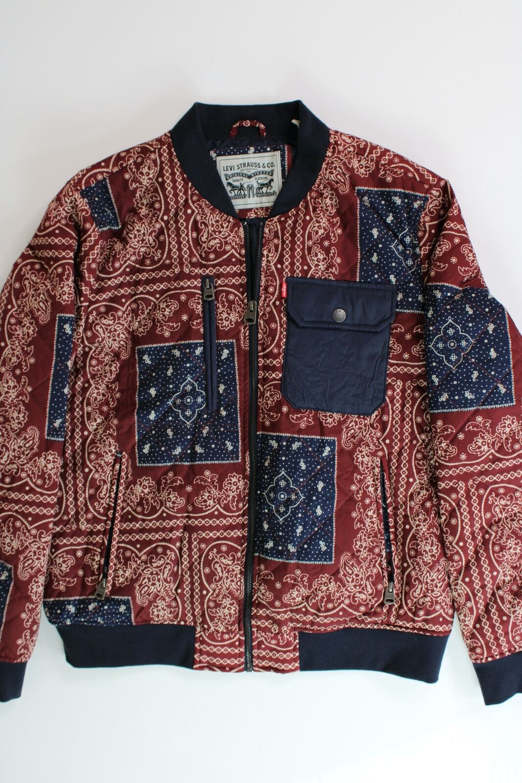 LEVI'S Men's Printed Quilted Bomber Jacket Large Blue Red