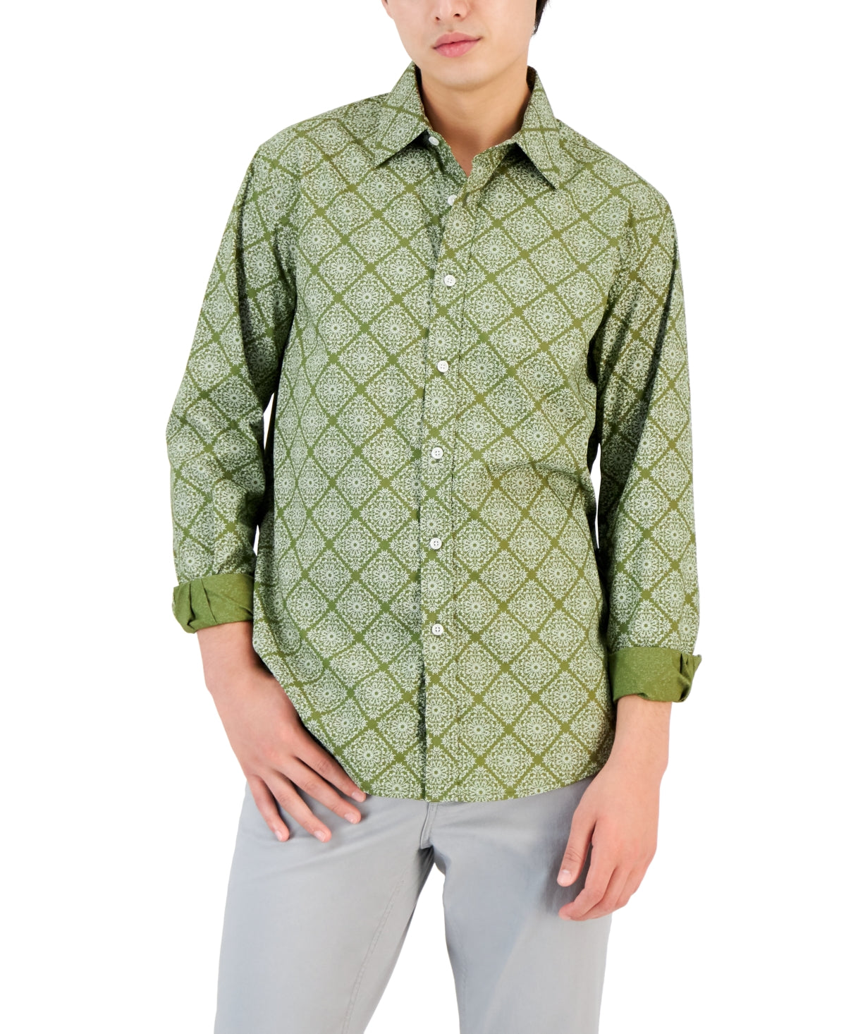 Club Room Mens Cotton Printed Buttondown Shirt Green Medium