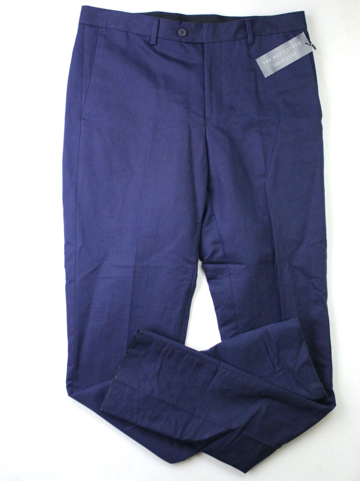 Mens Store Bloomingdales Cotton & Linen Slim Fit Size 38 Dress Pants Navy Blue