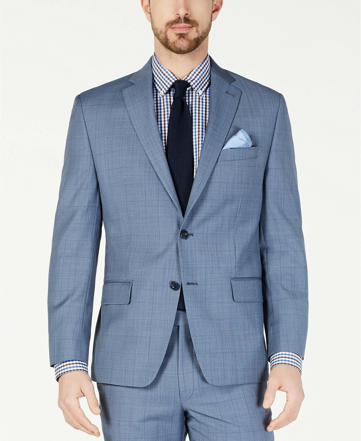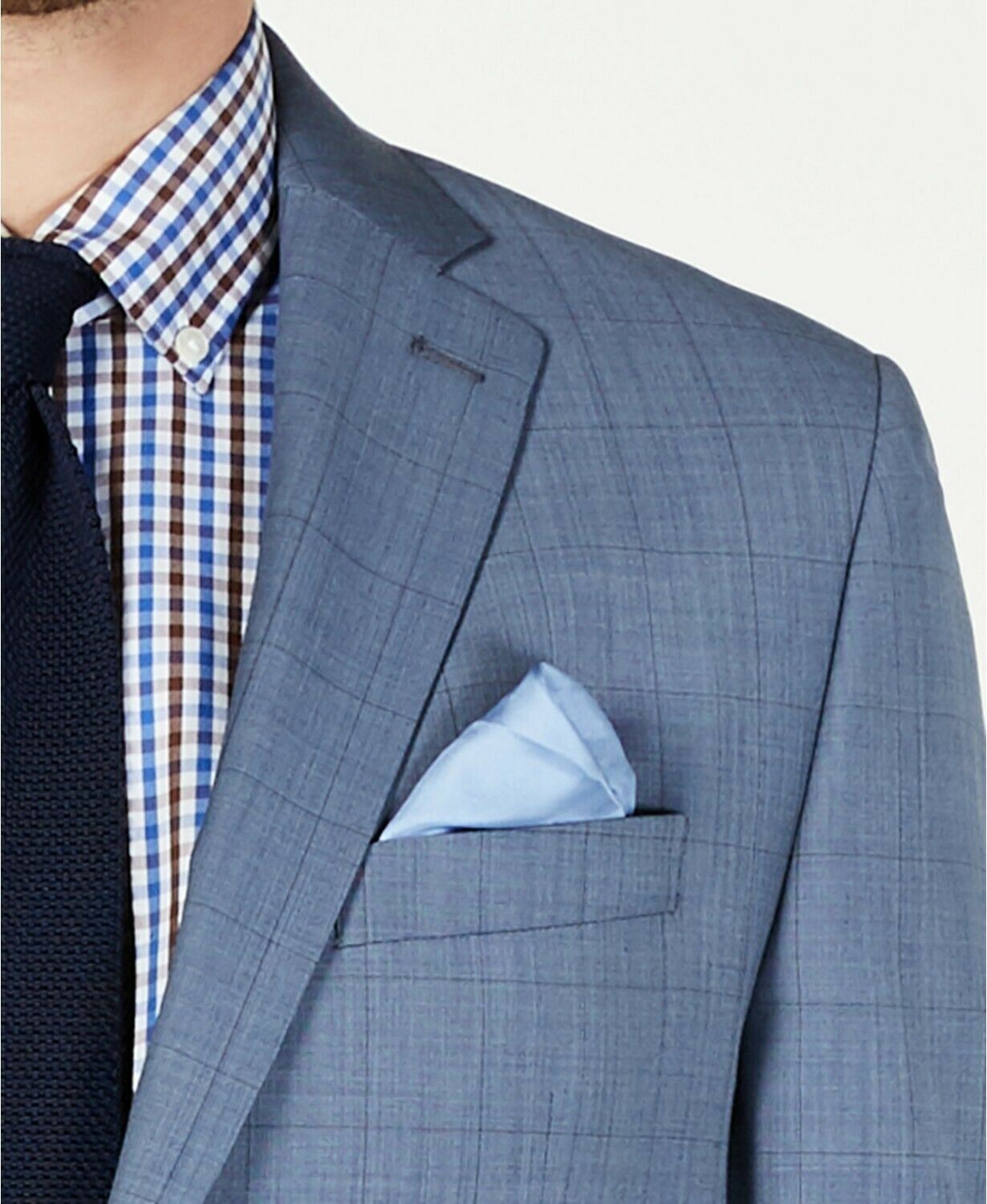 Michael Kors Classic-Fit Airsoft Light Blue Windowpane Suit Jacket 50R