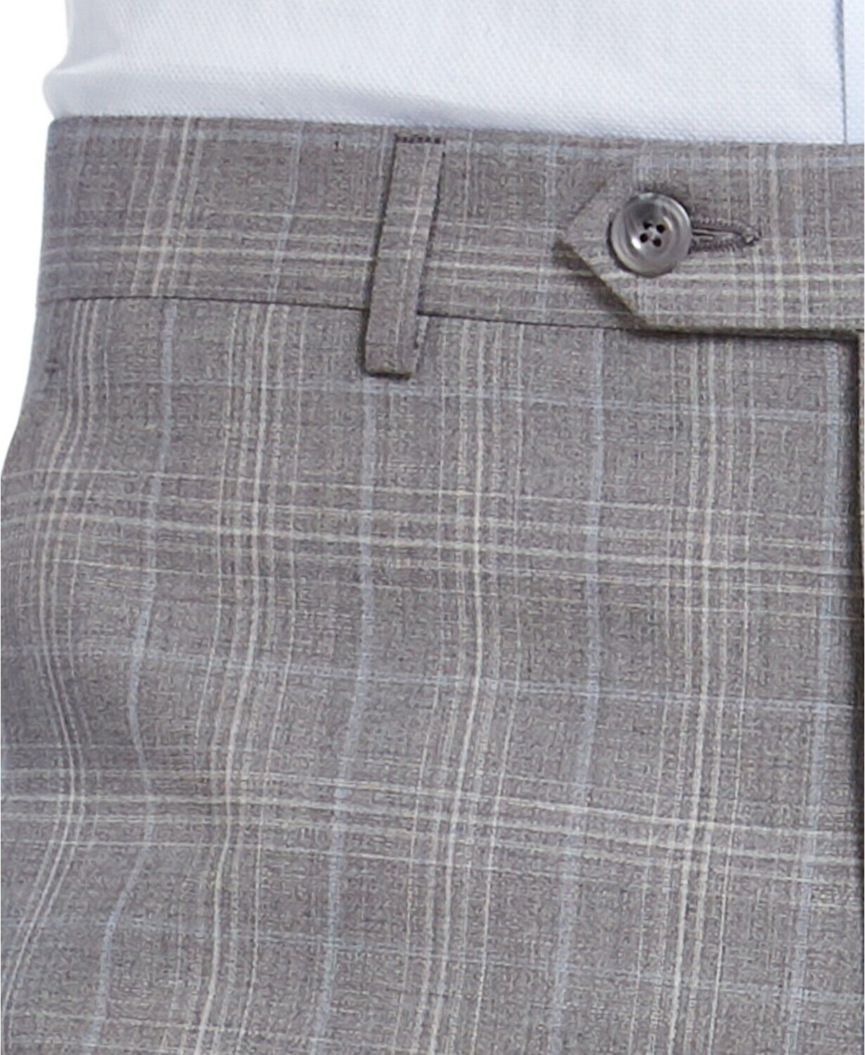 - Flat front; finished hem; no cuff
