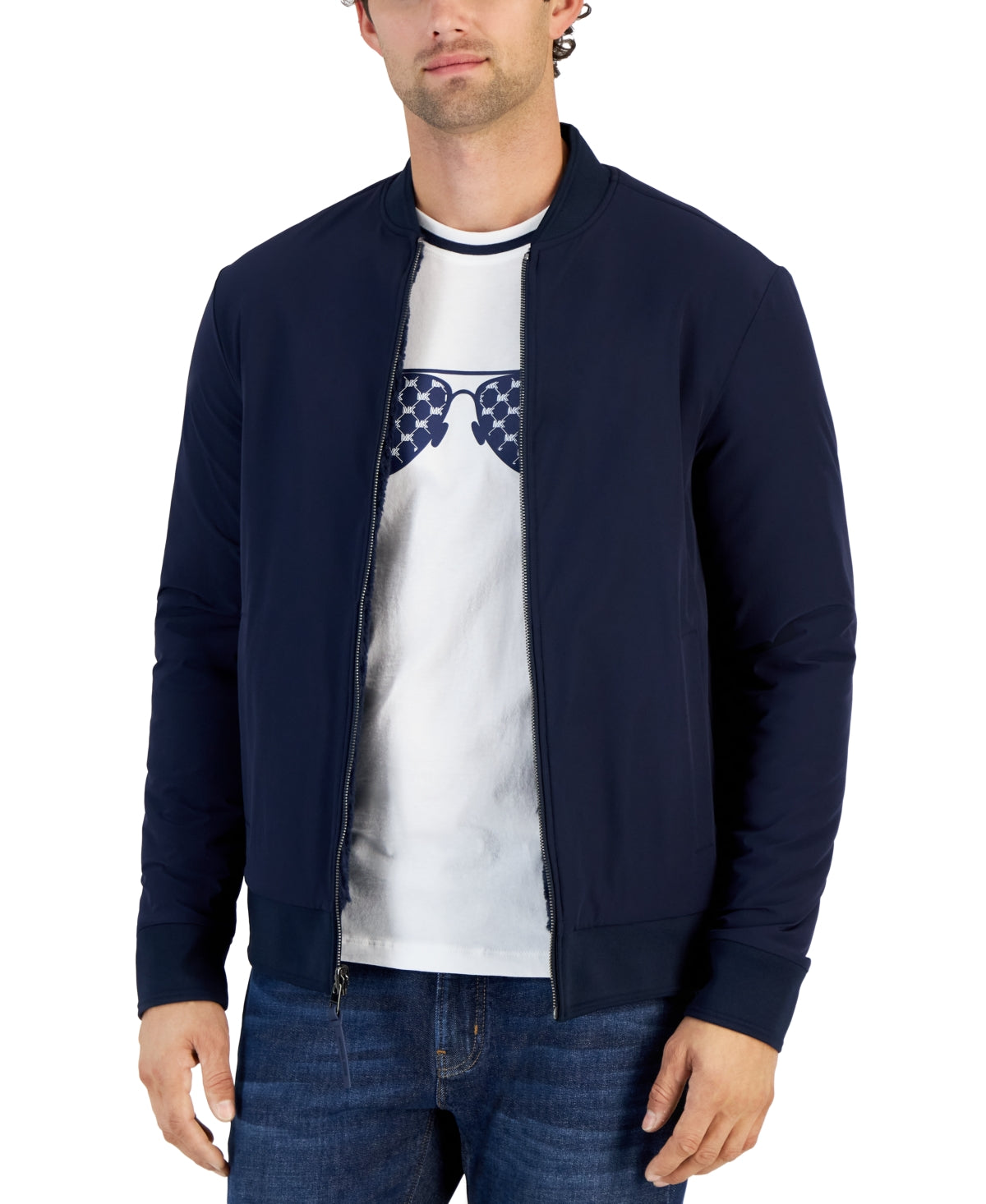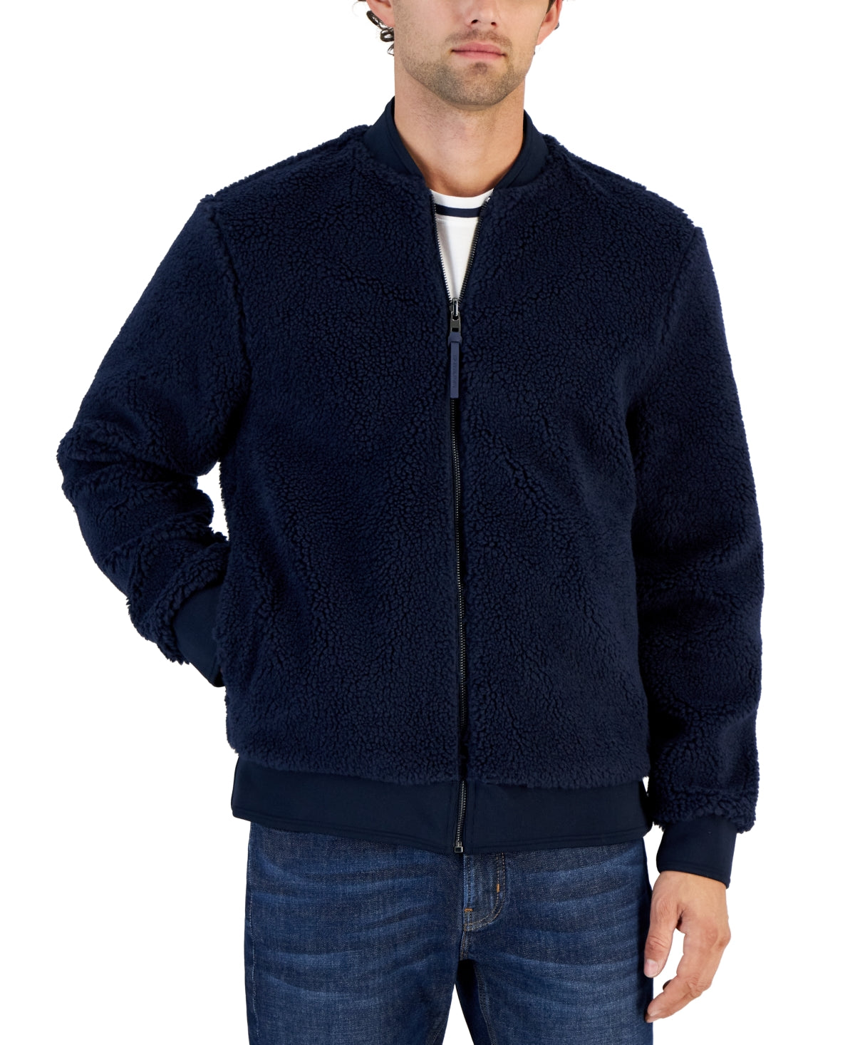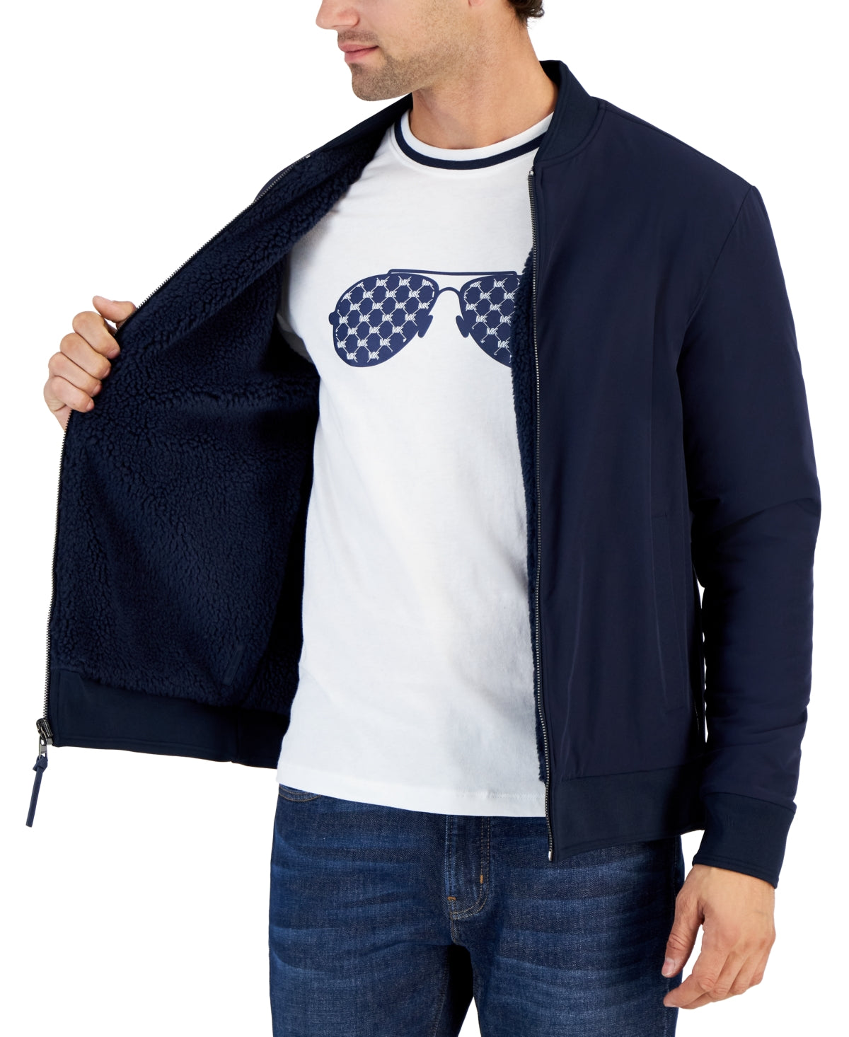 Michael Kors Mens Fleece Reversible Zip Front Jacket Coat Midnight Blue XL