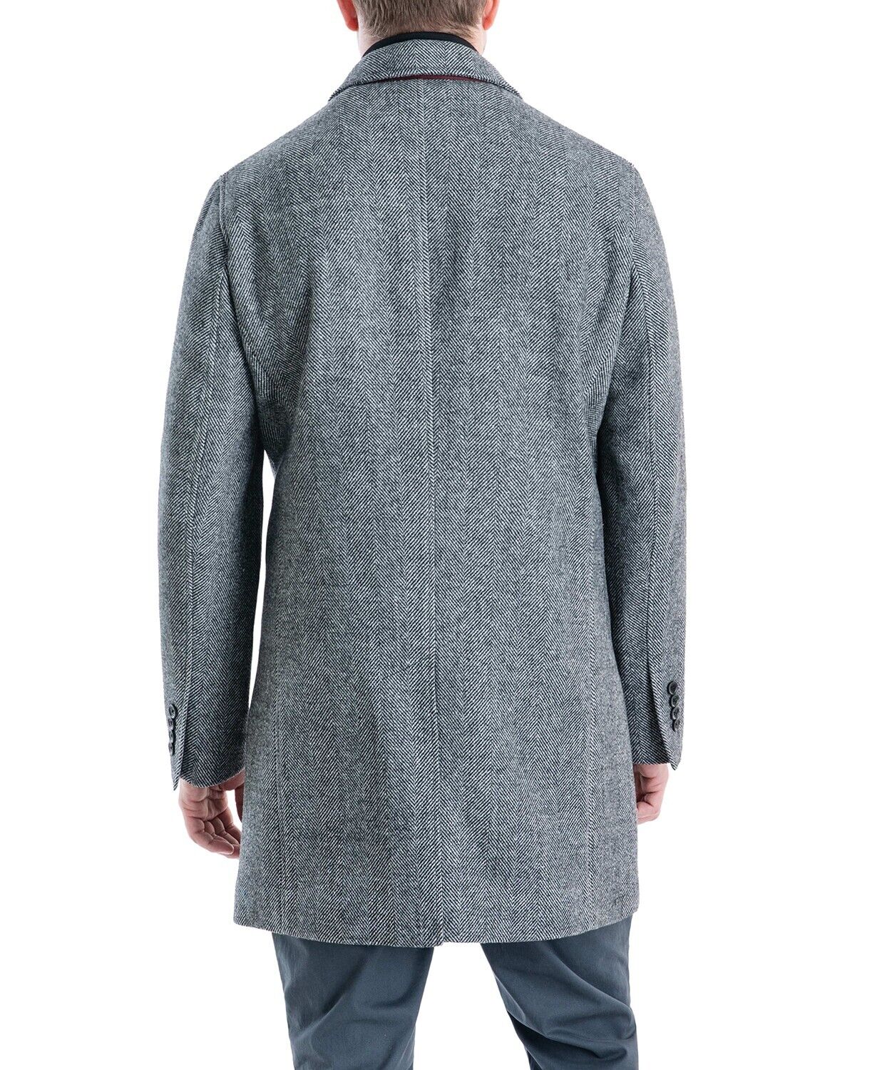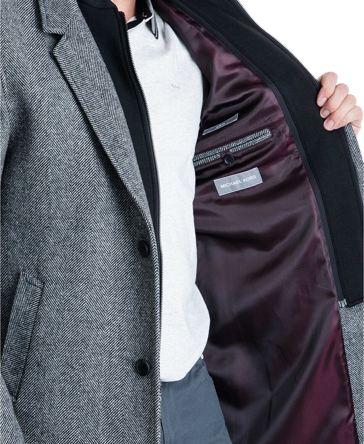 Michael Kors Men's Pike Slim Fit Top Coat 36R Herringbone Wool Black White