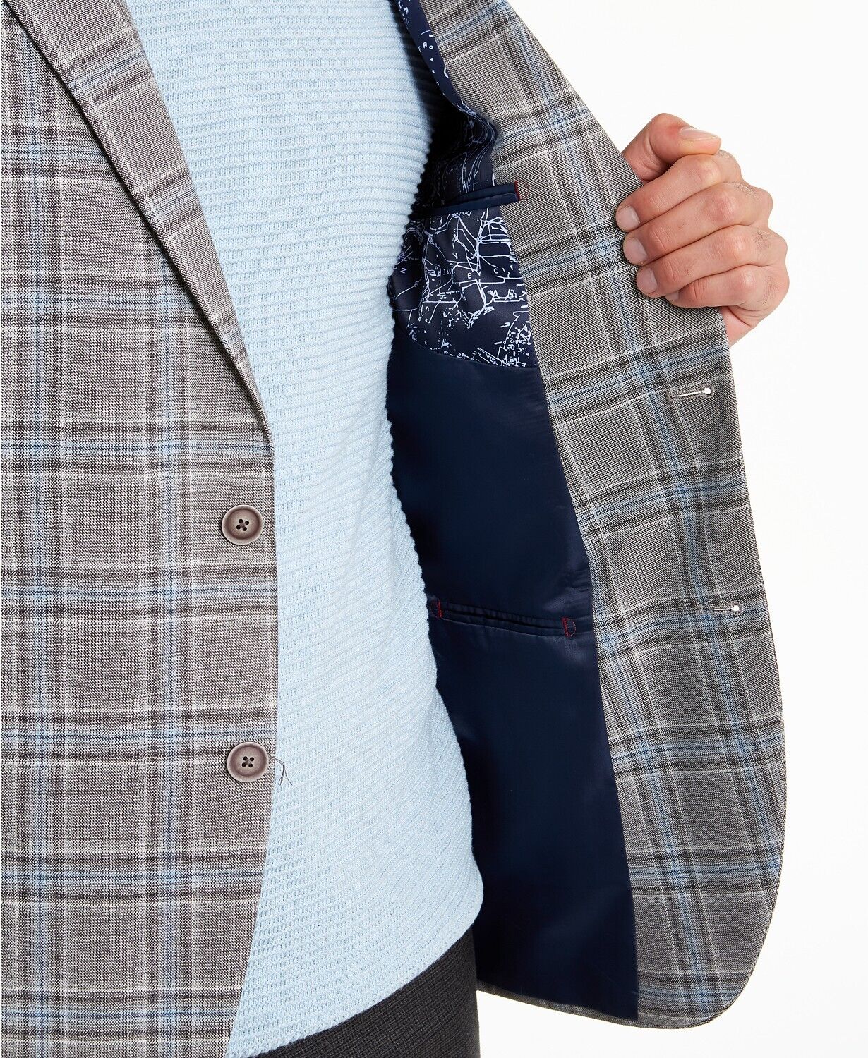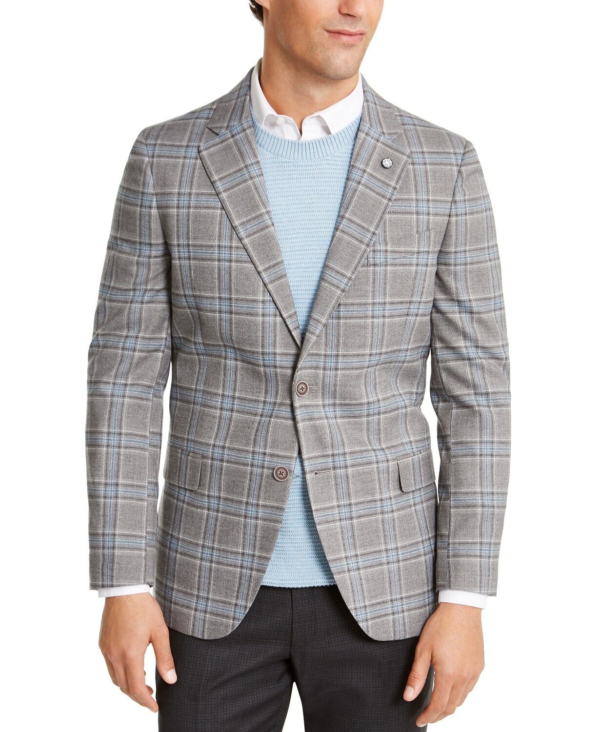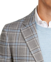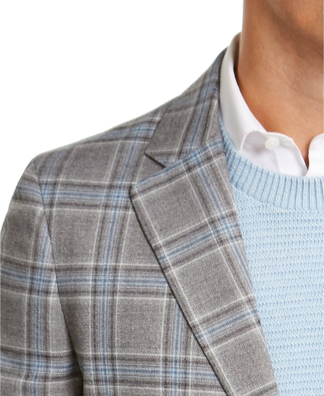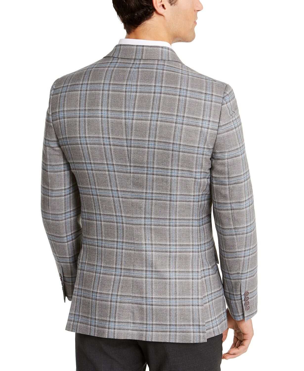 Nautica Men's Gray Plaid Sport Coat 46L Modern-Fit Active Stretch